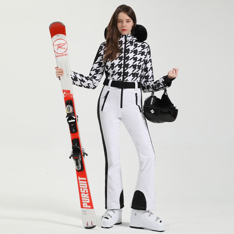 001 New Women's Double Board Waterproof Windproof Warm Suit Snow Professional One-piece Ski Jacket And Pants Set