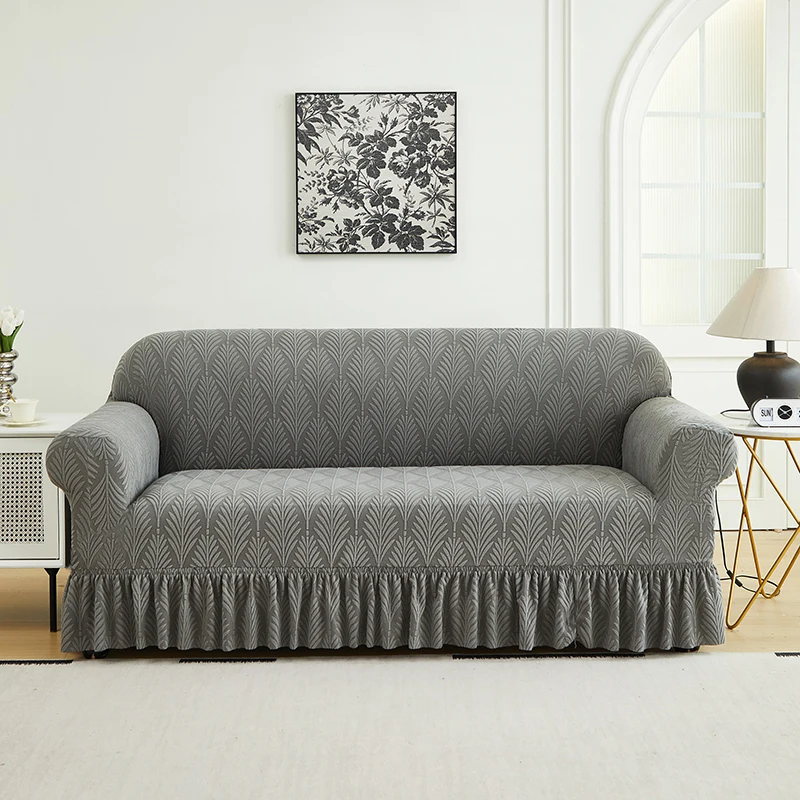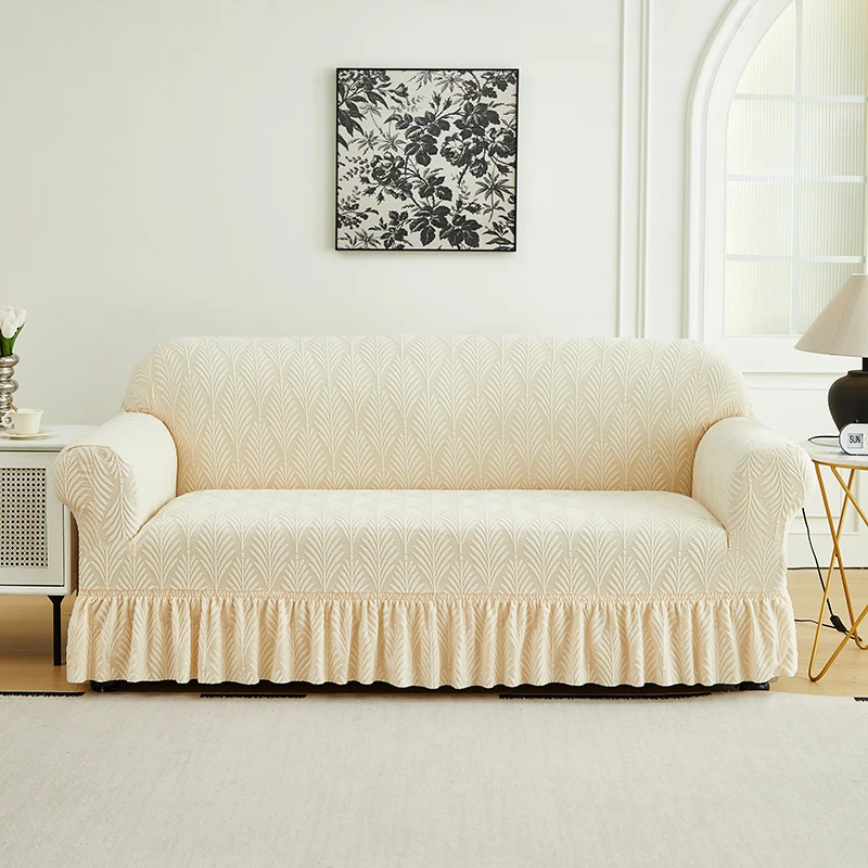1 PC Jacquard Sofa Cover With Skirt Splash Can Be Easily Removed Couch Cover Protector Of Bench With Armrest Plant Pattern