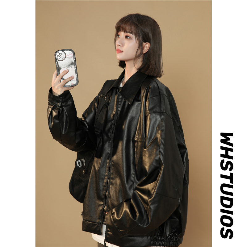 2023 autumn and winter new women's leather jacket loose motorcycle jacket JK167-P95