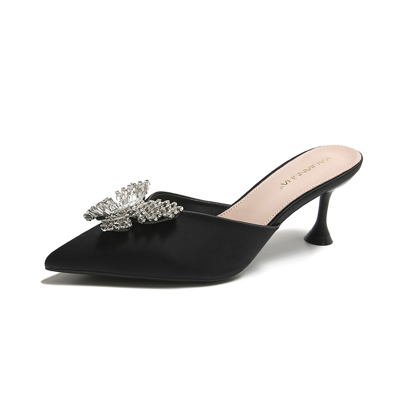 2023 Summer New Pointed Toe Stiletto Sandals Women's Shoes Rhinestone Baotou slippers high-heeled women's sandals and slippers half drag