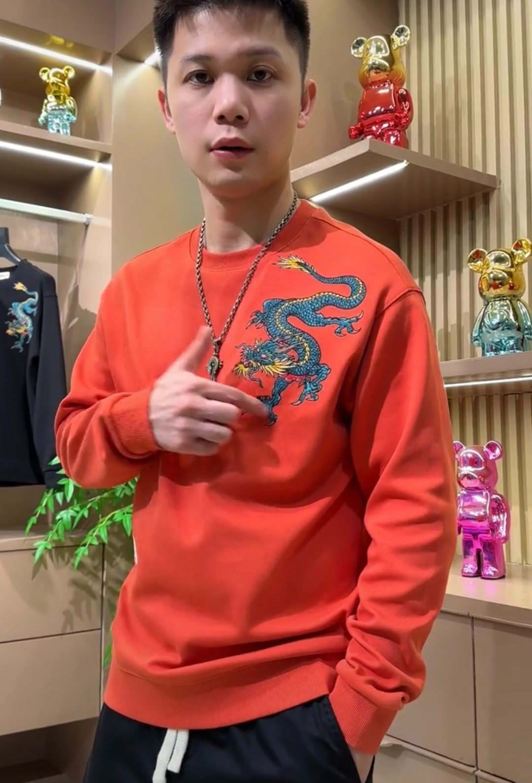 2024 Autumn/Winter Personalized Lifeyear Dragon European Goods Printed Fashion Pullover Pure Cotton Sweater Trendy
