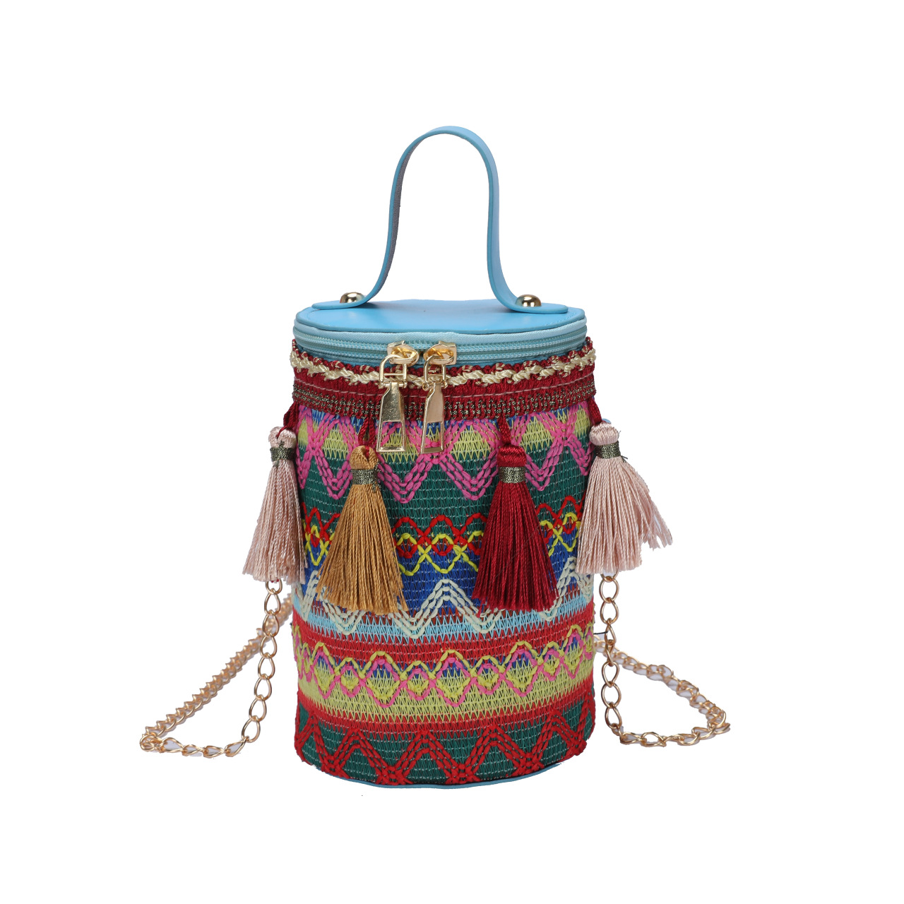 2024 New Shoulder Fashion Bohemian Ethnic Feng Shui Bucket Tassel Chain Women's Small Bag