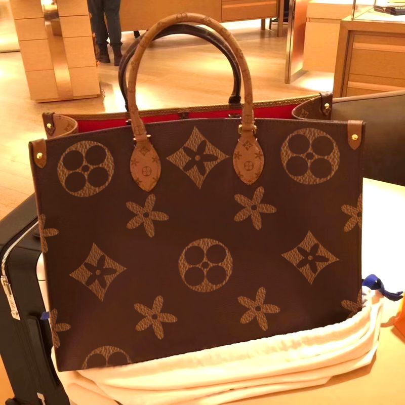 【 Price Reduction and Compensation 】 Women's 2024 New Trendy Old Flower Women's Bag Double sided Colored Shopping Bag Genuine Leather One Shoulder Handheld Big Bag Tote Bag