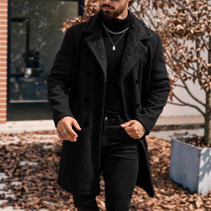 2025 Autumn Winter Men's Plush Wool Coat Woolen Overcoat Temu Trench Coat