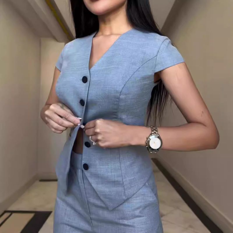 2025 European And American Women's High End Pure Color Temperament Sleeveless V Neck Vest Top Waistcoat Casual Straight Pants Suit Two Piece Set