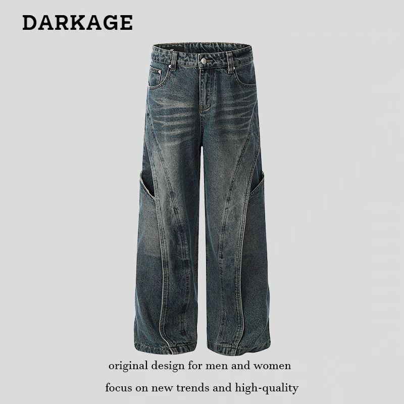 2025 New American Style Three-Dimensional Loose-Leaf Deconstructed Split Design Hand-Grabbed Cat Whiskers Honeycomb Vintage Washed Jeans