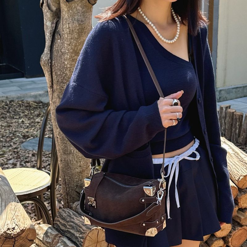 2025 Spring And Summer New Genuine Suede Rivet Square Soft Box Crossbody Bag Women's Pillow Bag High-grade Feeling Fashion Versatile Casual Daily