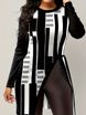 2025 Temu Spring/Summer Geometric Printed Long Sleeve Round Neck Split Skirt