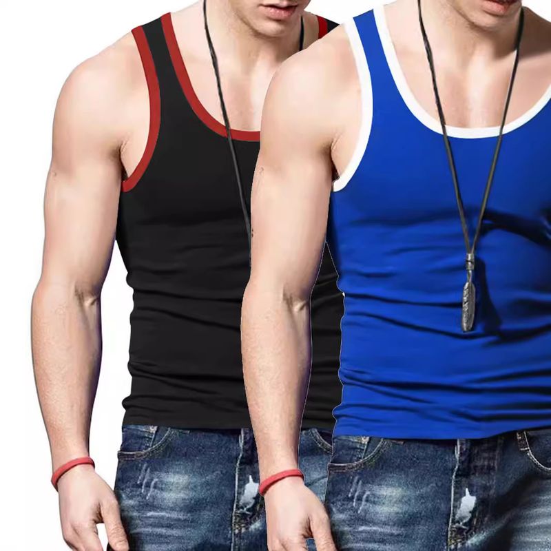 24 Summer Men's Vest Ice Silk Solid Color New Sleeveless Breathable Tight-Fitting Casual Sports Tank Top 2-Piece Set