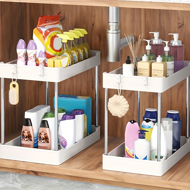 2pcs Two-Tier Under Sink Organizer And Storage - Black Cabinet For Cleaning Supplies And Bathroom Essentials - Large And Medium Sizes Available