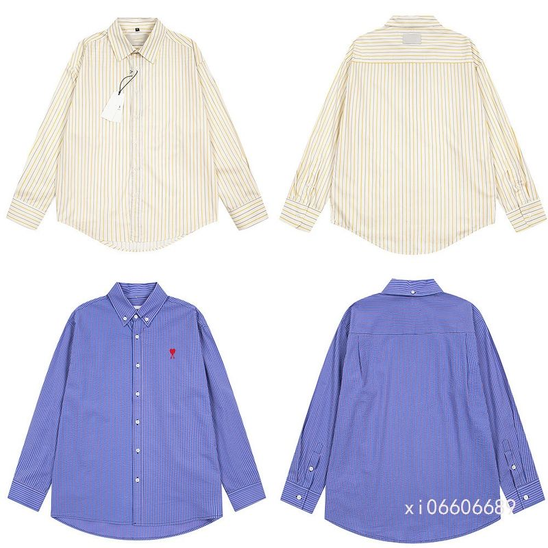 AMI CLAMS Spring And Autumn Long Sleeve Unisex Lazy Simple Cotton Heart Stripe Shirt