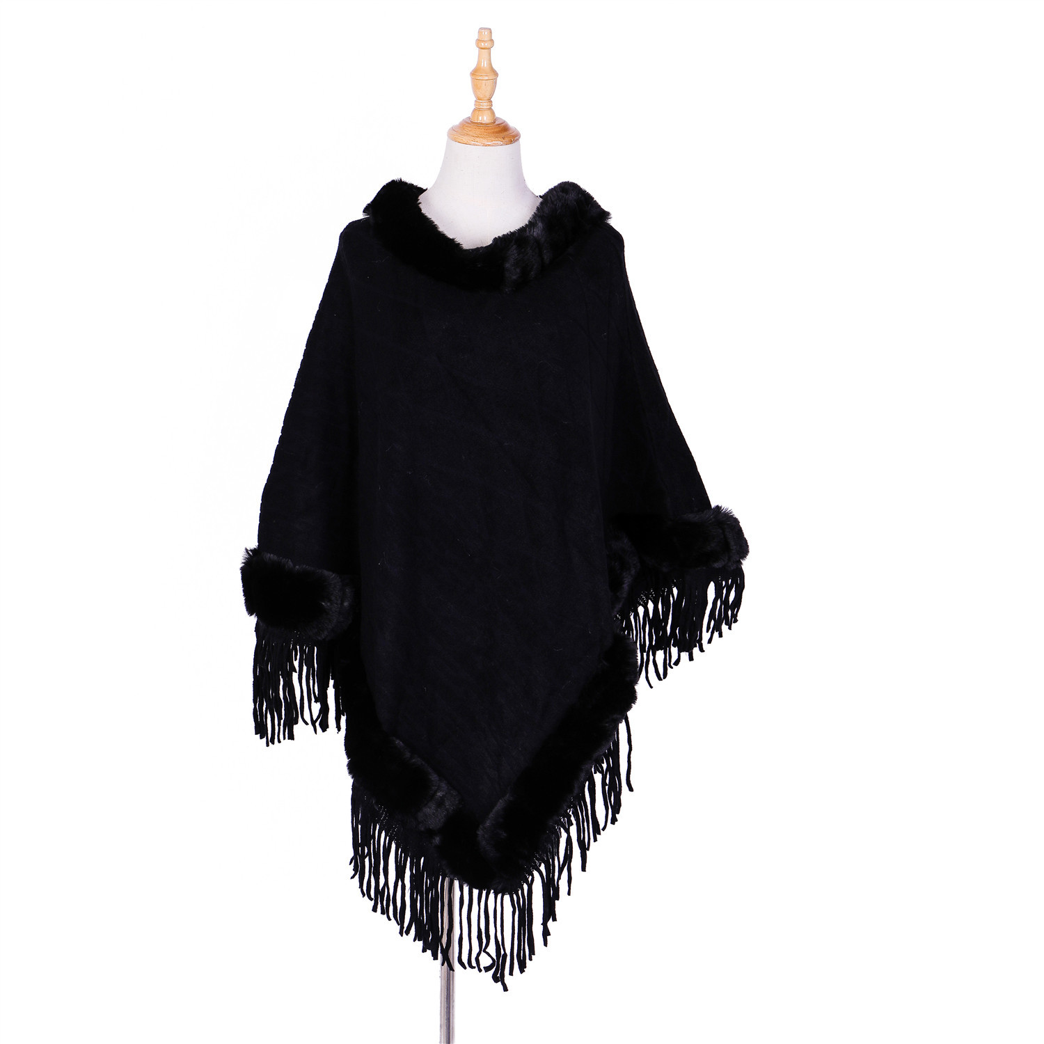 Autumn and winter new solid color fur collar women's cashmere shawl versatile for travel