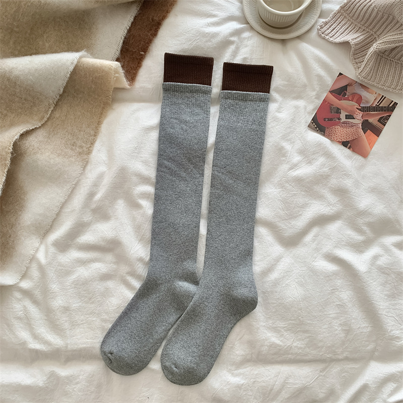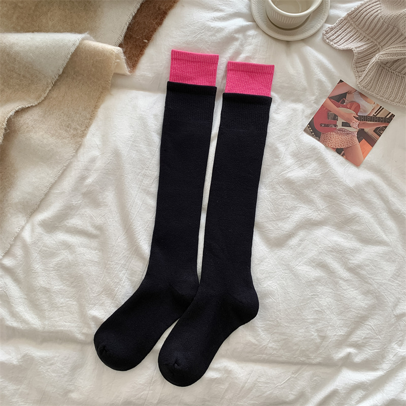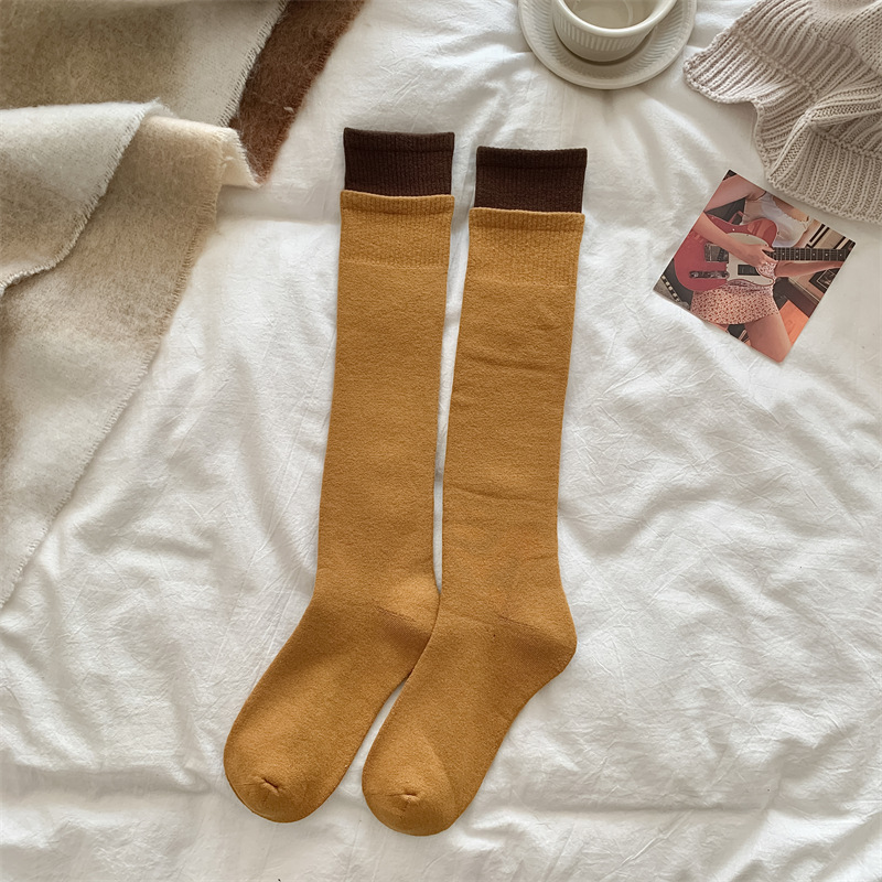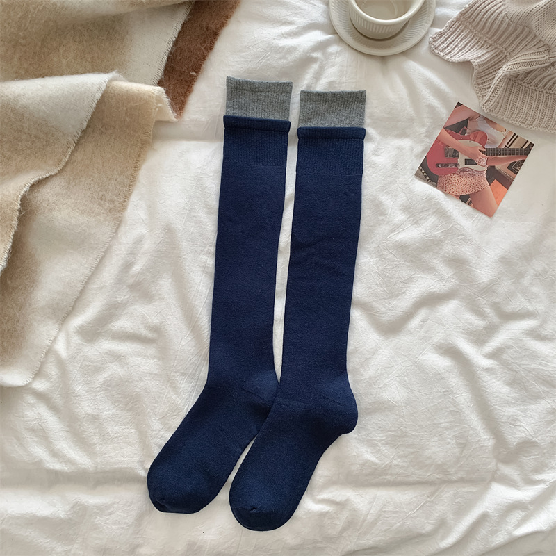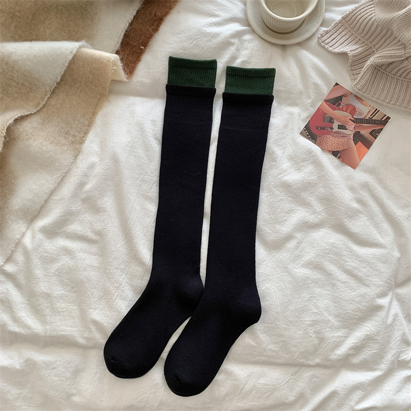 Autumn and winter thick looped color blocked calf socks Korean Instagram internet famous double ribbed warm and slimming JK long tube socks