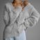 Women's Oversized V-Neck Faux Fur Knit Cardigan Long Sleeve Casual Open Front Sweater Coat For Fall & Winter