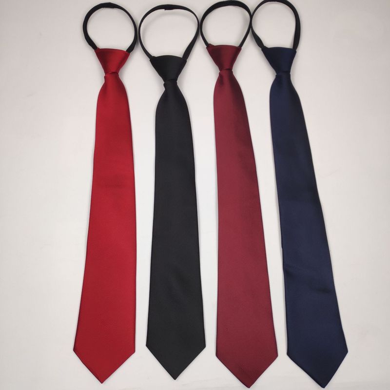 Black And Red Polyester No-Knot Twill Men's 8cm Lazy Solid Color Zipper Tie
