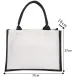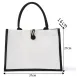 Black/White Large Capacity Canvas Handbag Burlap Shopping Bag Foldable Travel Storage Organizer Eco-Friendly Grocery