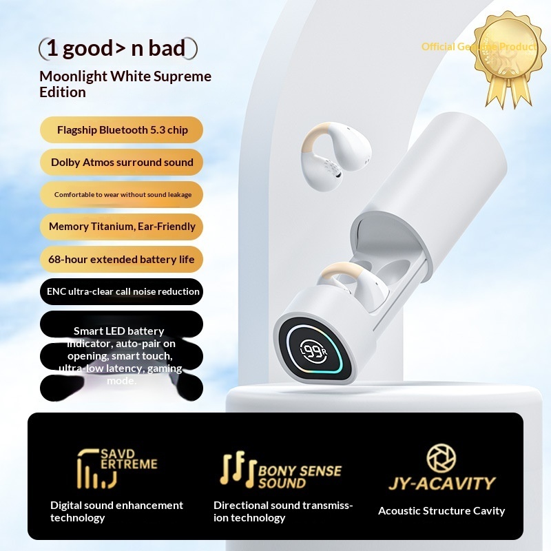 Brand:Neutral,Transmission Range:15m,Functionality:Bone conduction, ultra-long battery life, supports music playback,Bluetooth Protocol:5.3,How to use:Clip-on Earrings,Is it single or double ear?:Bilateral Stereo Sound,Color:White, black, off-white,We have authorized private labels available:No,Is it exclusively for cross-border export supply?:No,Customizable:Support,Is it a patented source product?:No,Mold Type:Official Model,What type of chip is it?:Jerry,Battery life:4-8 hours,Year/Season of Release:2023,Style:Sporty style,Waterproof performance:Waterproof for Daily Use,Item Number:M9,Material:Plastic