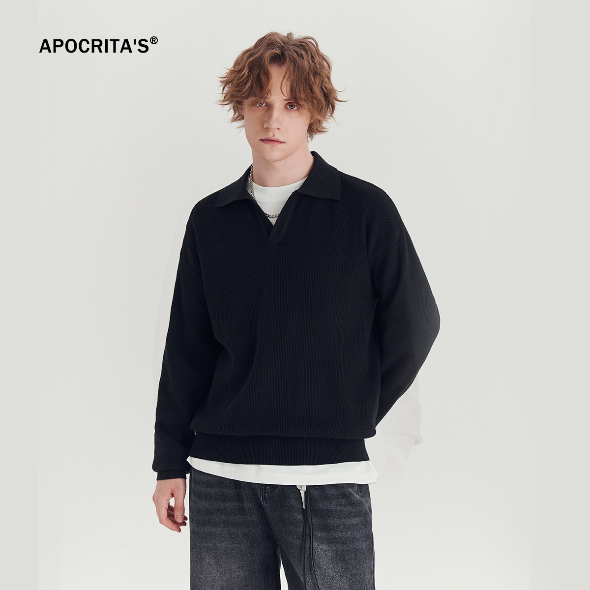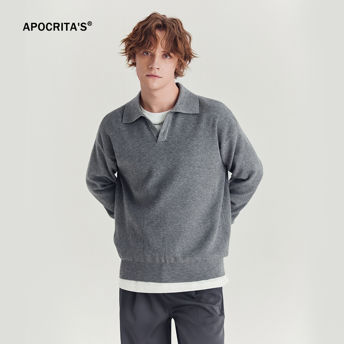 Product Source Category:In Stock,Material function:Machine washable, high color fastness,Item Number:APOA256,Brand:APOCRITA'S,Design 1:Pullover,Design:Loose Fit,Collar Style:Turn-down Collar,Sleeve Length:Long Sleeve,Thickness:Average,Style:Korean Style,Design details:Ribbed Hem,Bargain Category:Fashionable Urban 24-35 Years Old,Suitable for everyone:Youth,Year/Season of Release:Autumn 2025,Fabric Name:Synthetic Blend Fabric,Main fabric composition:Polyester Fiber Dacron,Content of the main fabric components:29.3%,Applicable Scenarios:Everyday,Suitable for the season:Autumn,Applicable to the target audience:Youth,Color:Soft beige, black, floral gray, mocha color,Size:S, M, L, XL, XXL,Craftsmanship:None,Is it exclusively for cross-border export supply?:No,Original Design Source:yes,Is there a quality inspection report?:No,Suitable age group:adult,Applicable Gender:Male,Product Category:Knit Sweater