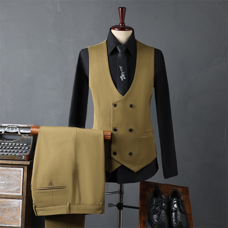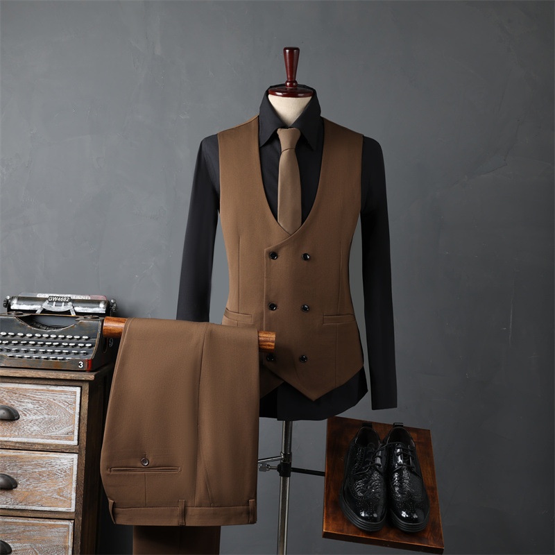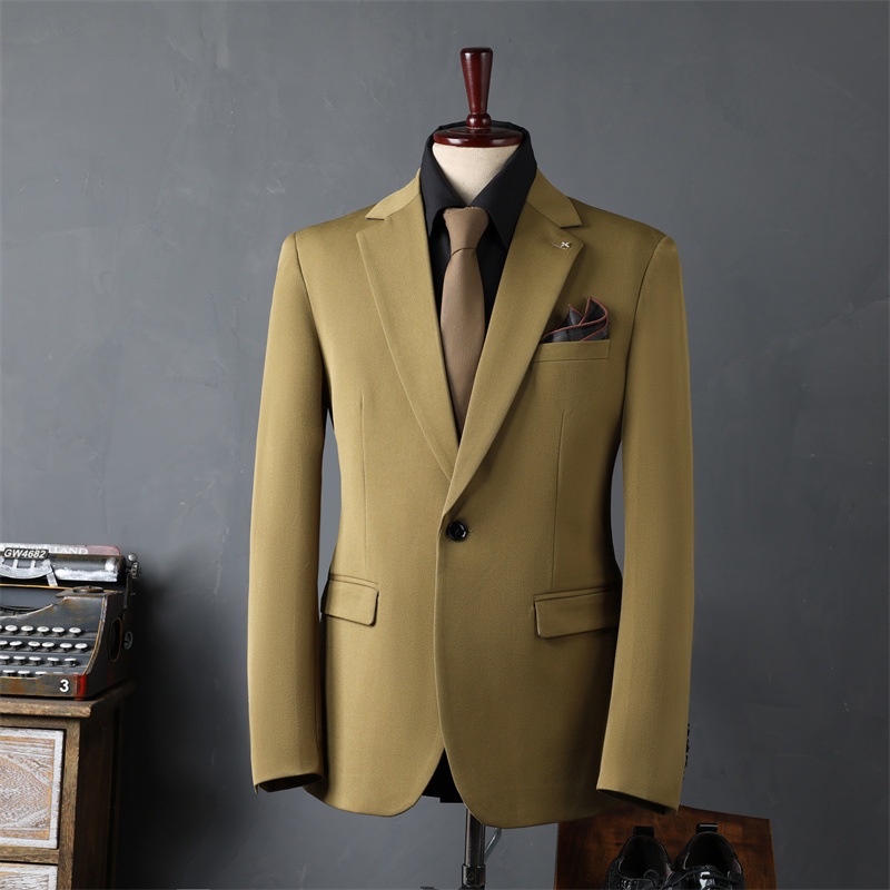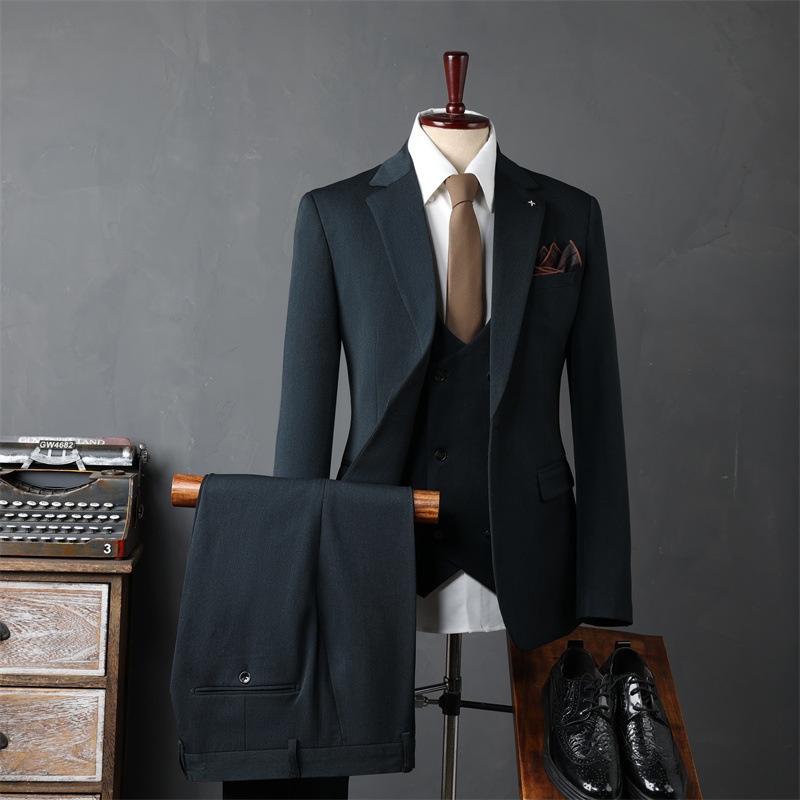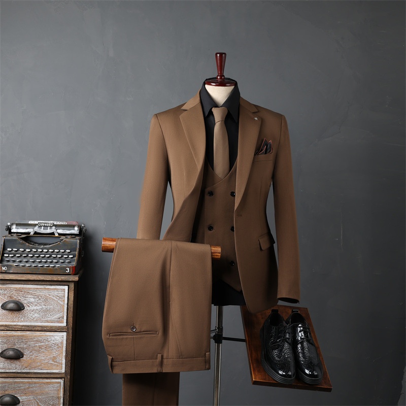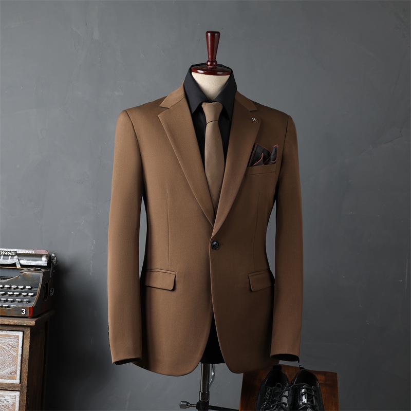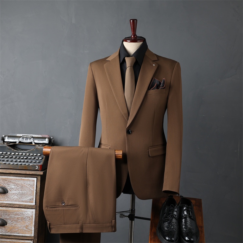 Product Source Category:In Stock,Brand:other,Item Number:9981,Bargain Category:Fashionable Urban 24-35 Years Old,Front placket:Single-row One Button,Error margin:1-3cm.,Suitable for the season:Spring and Autumn Season,Is it in stock?:No,Fabric Name:Synthetic Blend Fabric,Main fabric composition:Viscose,Content of the main fabric components:30,Applicable Scenarios:Casual,Collar Style:Notch Lapel,Slit Design:Side Slit,Design:Slim Fit,Thickness:Regular,Year/Season of Release:Autumn 2024,Design details:Metal Decoration,Color:Black suit + trousers, dark gray suit + trousers, dark green suit + trousers, coffee color suit + trousers, camel color suit + trousers, black suit + vest + trousers, dark gray suit + vest + trousers, dark green suit + vest + trousers, coffee color suit + vest + trousers, camel color suit + vest + trousers, black single-piece suit, dark gray single-piece suit, dark green single-piece suit, coffee color single-piece suit, camel color single-button single-piece suit, black vest + trousers with size note, dark gray vest + trousers with size note, dark green vest + trousers with size note, coffee color vest + trousers with size note, camel color,Size:48/M 50-56kg ,50/L 56-62.5kg ,52/XL 62.5-67.5kg ,54/2XL 67.5-72.5kg ,56/3XL 72.5-79kg ,58/4XL 79-86.5kg ,60/5XL 86.5-95kg ,62/6XL 95-105kg ,64/7XL 105-115kg,Is it exclusively for cross-border export supply?:No,Style:Business Formal Attire,Appraisal Agency:000,Clothing Craftsmanship:Adhesive Lining Technology,Original Design Source:yes,Is there a quality inspection report?:No,Quality Inspection Report Number:000,Material function:Anti-wrinkle