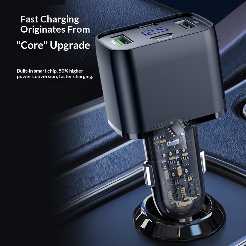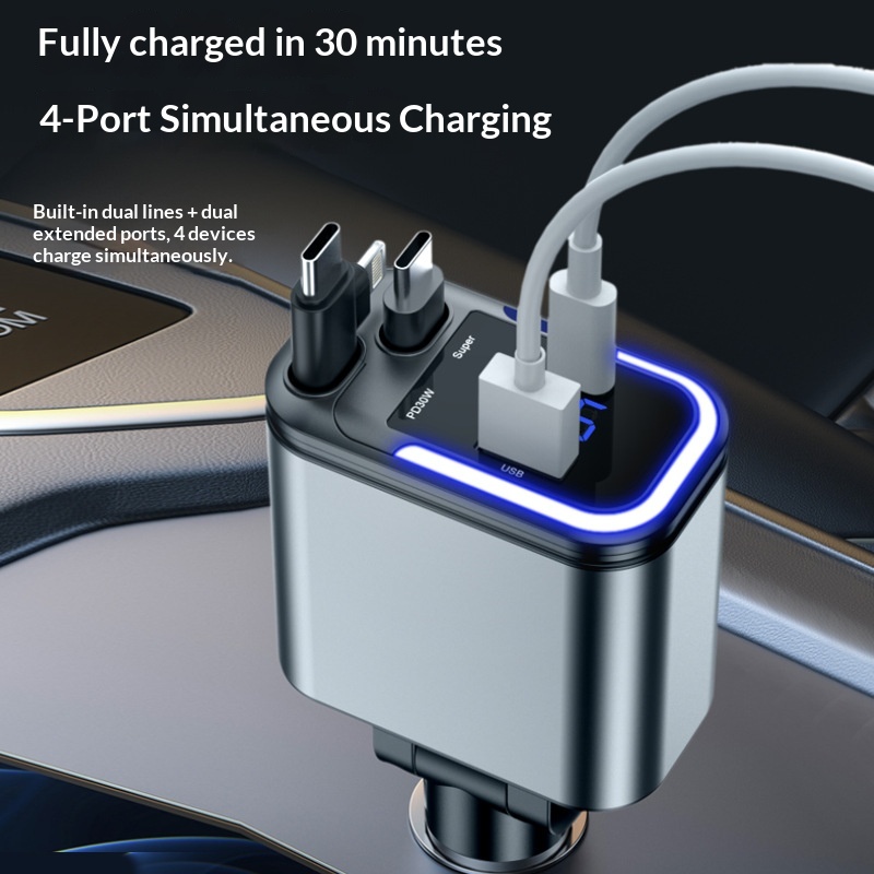 Cross-Border Car Charger Car Starry Sky Roof 180W Mobile Phone Car Charger Super Fast Charging Retractable Cable Car Cigarette Lighter
