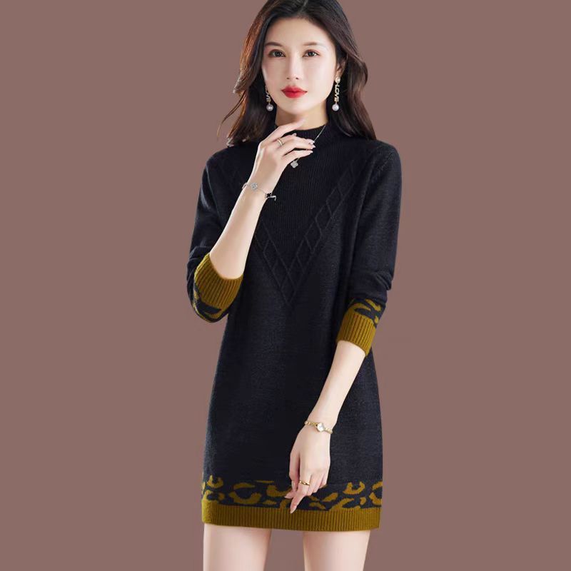 [Cashmere Family] Medium to long mother's wool base sweater, woolen dress, women's jacquard loose and thick knit inner