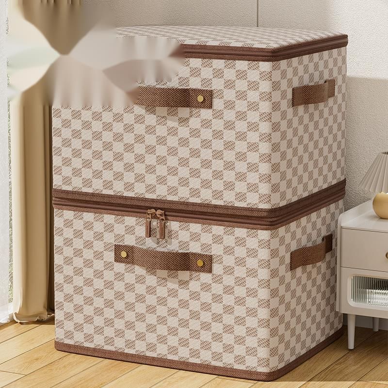 Checkerboard Zipper With Lid For Clothes, Toys, Household Bedroom Box, Wardrobe Storage Box