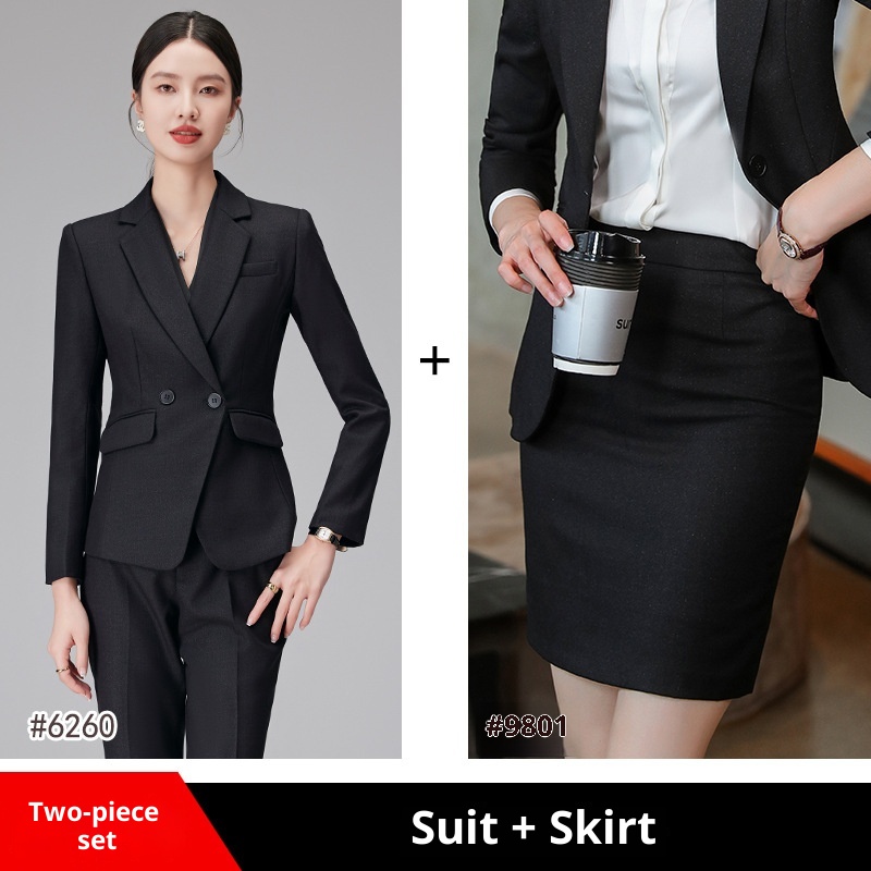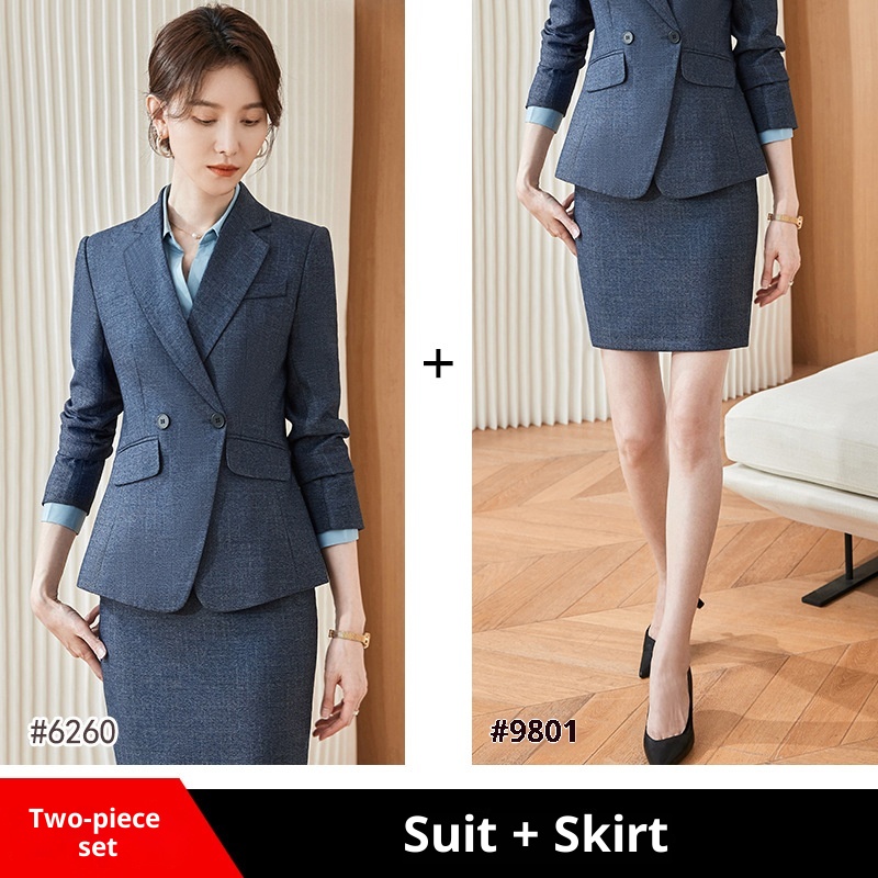 Item Number:JY-6260,Fabric Name:Polyester fiber,Main fabric material composition 2:Viscose,Year/Season of Release:2025 Winter Season,Main fabric composition:Polyester Fiber Dacron,Color:Black suit, black suit with black pants, black pants, gray suit with gray pants, gray pants, gray suit, blue suit, blue suit with blue pants, blue suit with blue skirt, blue pants, blue skirt, gray suit with skirt, black suit with skirt,Size:S,M,L,XL,XXL,3XL,4XL,Brand:Tianmu Blue,The length of the pants:Long Pants,Sleeve Length:Long Sleeve,Cross-border Style Type:Elegant and graceful,Sleeve Style:Regular Sleeve,Is it cross-border sourcing?:yes,Main Downstream Sales Regions 1:European and American,Main downstream sales regions 2:Southeast Asia