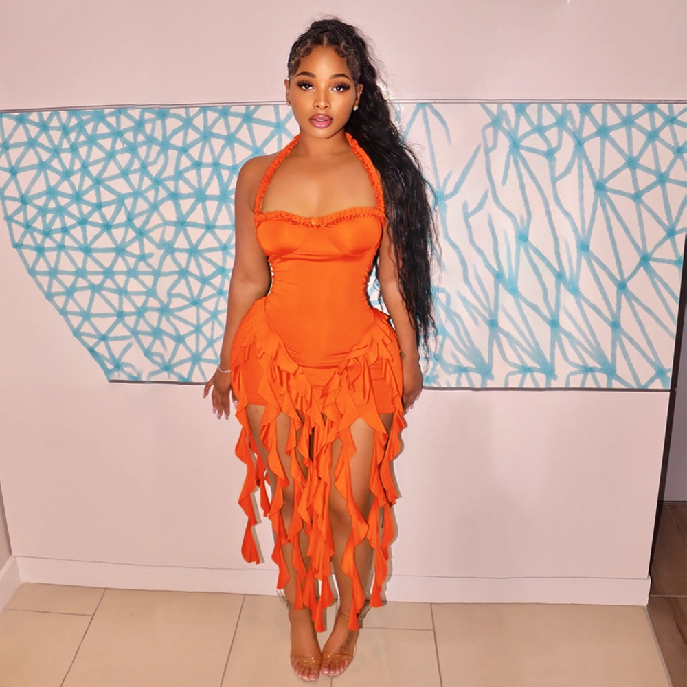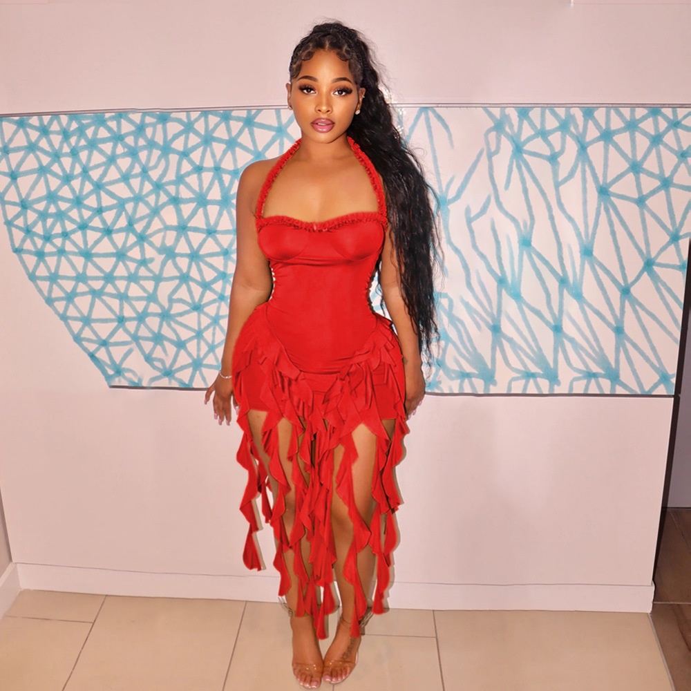 ChicShe CY901256 European And American Solid Color Tassel Halter Bodycon For Women Foreign Trade New Fashion Dress