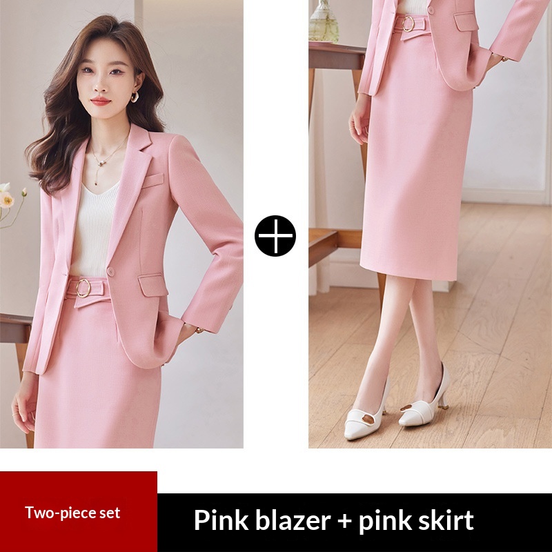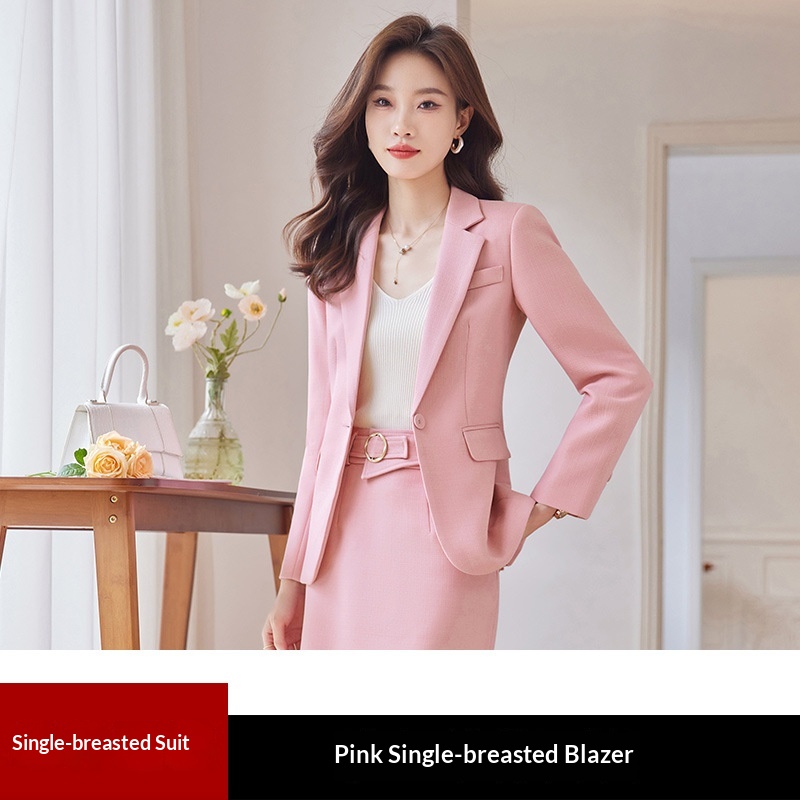 ChicShe Elegant And Small Jacket For Women OL Pink Suit Skirt High-Waisted Professional Two-Piece Set
