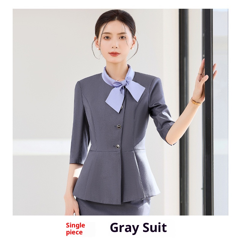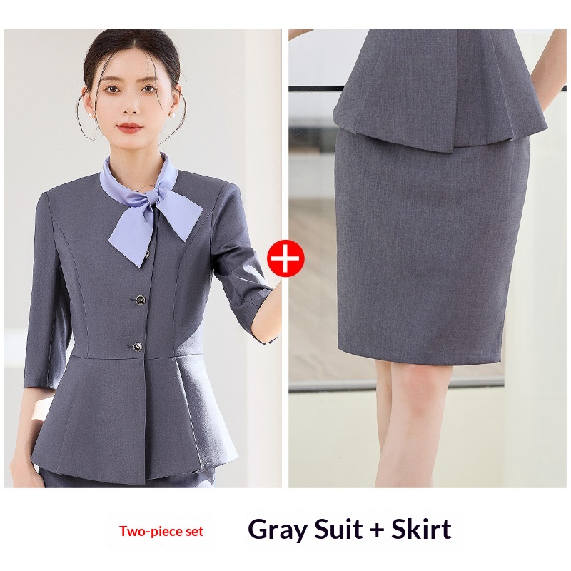 ChicShe Gray Professional Three-Quarter Sleeve Blazer Mid-Sleeve Women's Pants Skirt Two-Piece Set Spring Autumn Workwear