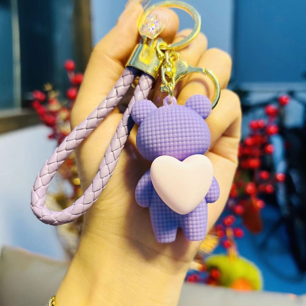 Cartoon Hugging Bear Plush Keychain for Girls, Exquisite Internet Celebrity Cute Pendant, Backpack Decoration, Car Keychain