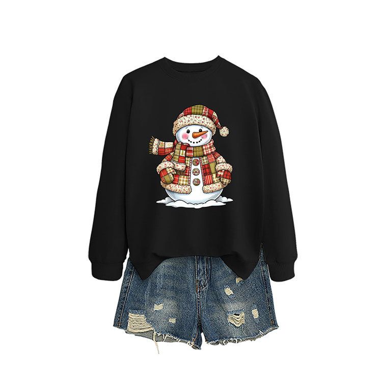 Cute Fun Loose Women's Floral Cotton Jacket Snowman Print Crew Neck Sweatshirt Base Layer
