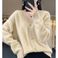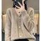 Women's Clothing V-Neck Cashmere Cardigan Long Sleeve Loose Fit Diamond Pattern Knit Sweater Coat