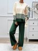 Women's Clothing Casual Loose Contrast Color Straight Trousers Sweater Knitted Suit