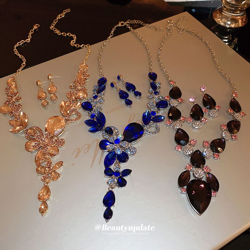 Diamond-Encrusted Water Drop Geometric Light Luxury Necklace And Earring Set Dress Design Elegant Collarbone Chain Niche