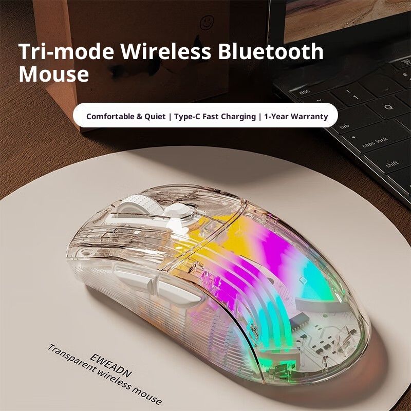 Brand:EWEADN/Forward Runner,Item Number:Q8,Time to market:2022,Type:Optical Mouse,Mouse size:Ordinary mouse 100-120mm,Connection method with a computer:Wired,Compatible Models:Laptop,Optical resolution:1600dpi,Number of Buttons:7,Interface:USB,Wireless Transmission Frequency:2.4GHz,Does it support ergonomic design?:Support,Adjustable resolution:Six-speed,Operating distance:1.75,working method:Optical,Direction of the scroll wheel:Four-way roller,Long cable length:1.75,Product Dimensions:127*63*39mm,Product weight:119g,Custom Printing:Sure,After-sales service:Storefront Three Guarantees,Package contents list:Mouse,Color:Transparent wired mouse, transparent mouse wireless + Bluetooth + wired three-mode,We have authorized private labels available:No,Is it exclusively for cross-border export supply?:No,Customizable:Support,Is it a patented source product?:No,Power supply mode:Comes with a charger