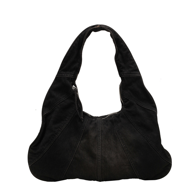 Distressed denim underarm bag 2024 spring new vintage retro bag casual commuter canvas shoulder bag