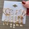 Earrings Exaggerated C Shaped Temperament Pearl Pendant Earrings Triangular Metal 9 Pieces
