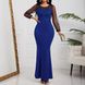 Elegant women's dress, solid color mesh sequin splicing, high waist long slim evening gown