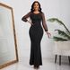 Elegant Women's Dress, Solid Color Mesh Sequin Splicing, High Waist Long Slim Evening Gown Christmas Thanksgiving Halloween Valentine's Day