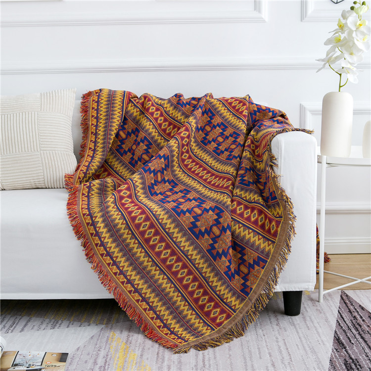 Ethnic style double-sided thickened coarse cotton thread blanket, geometric full cover sofa towel, jacquard tea table