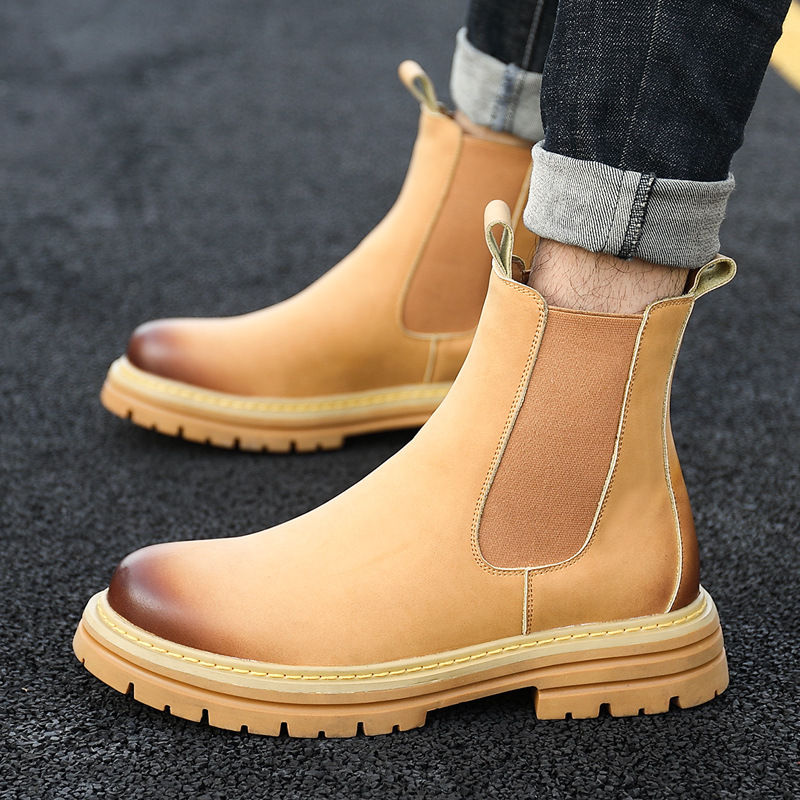 European Warm Series Men's Martin Autumn Winter British Style Korean Version Fleece-Lined Slip-On Boots Thickened Fleece