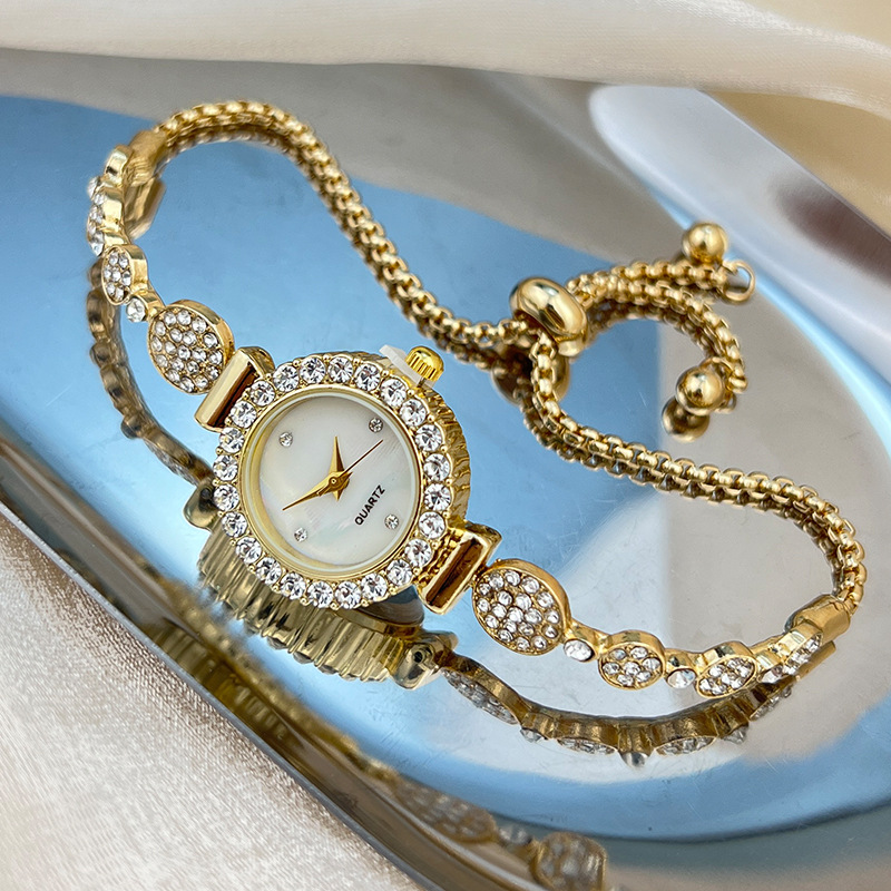 Fashion Round Diamond Bracelet with Pullable Free Adjustment Women's Quartz New Watch