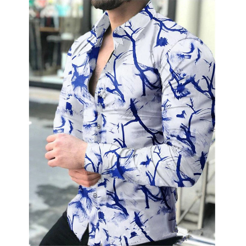 ForMen 2021 Autumn Turn-Down Collar For Men, European And American Fashion Printed Shi, Men's Cardigan Long Sleeve