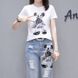 Women's spring and summer two-piece suit student cartoon T-shirt top + ripped nine-point jeans female