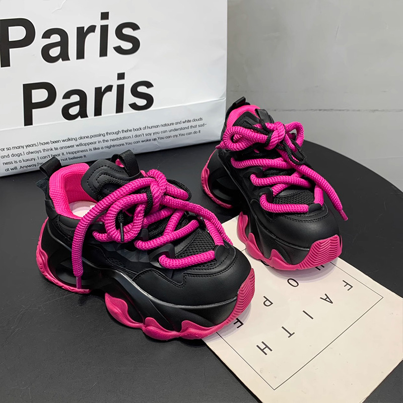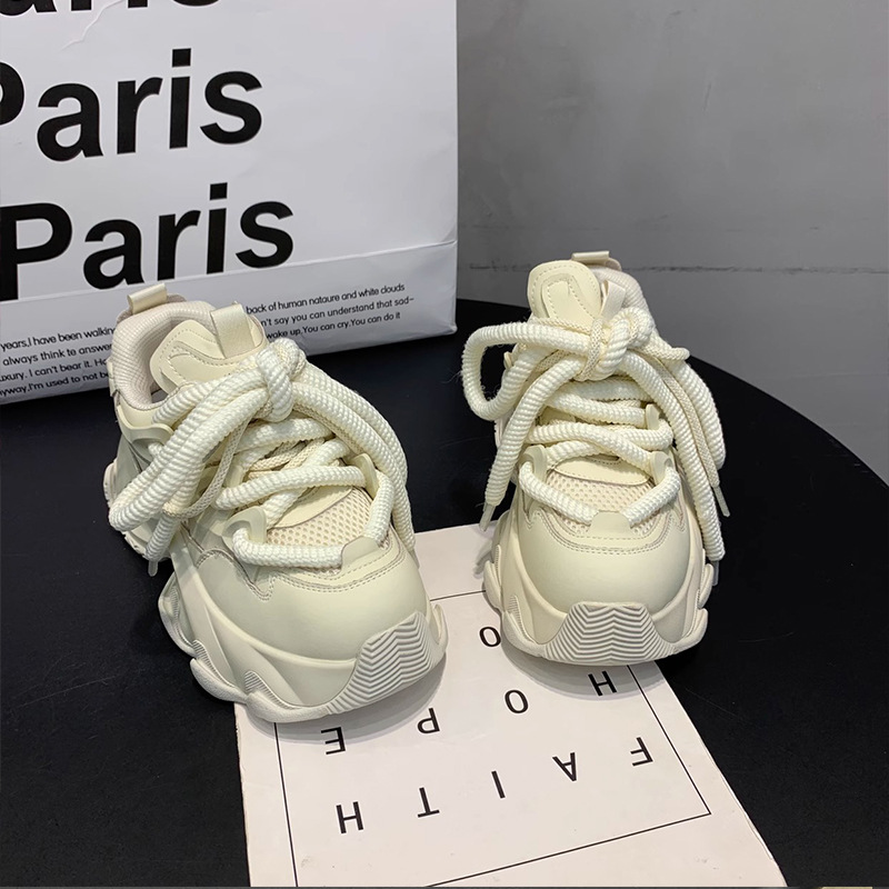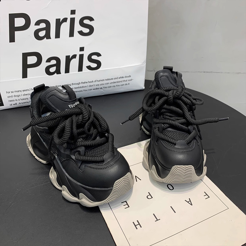 Genuine leather father's shoes, women's shoes, new autumn 2023 popcorn puff, small, lightweight, thick soled, and elevated sneakers