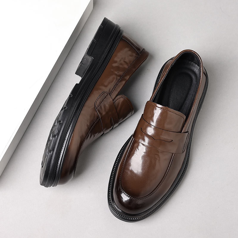 Glide Genuine Leather Men's Casual Soft Sole Shoes Wear-Resistant Versatile Trendy Comfortable Slip-On Loafers