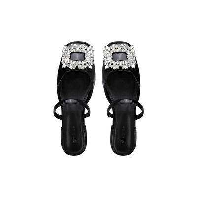 Grape Mom with the same style 2023 spring new sexy sandals and slippers women flash diamond shallow mouth square head flat half drag sandals women