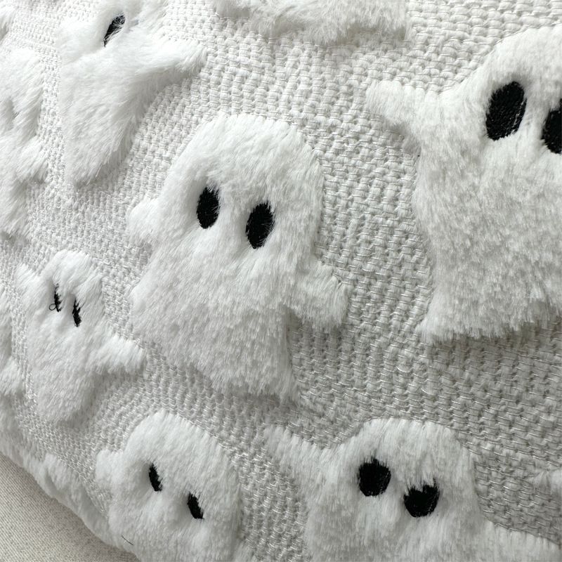 Halloween Plush Embroidery Black And White Decorative Cushion 2025 Fall/Winter New
