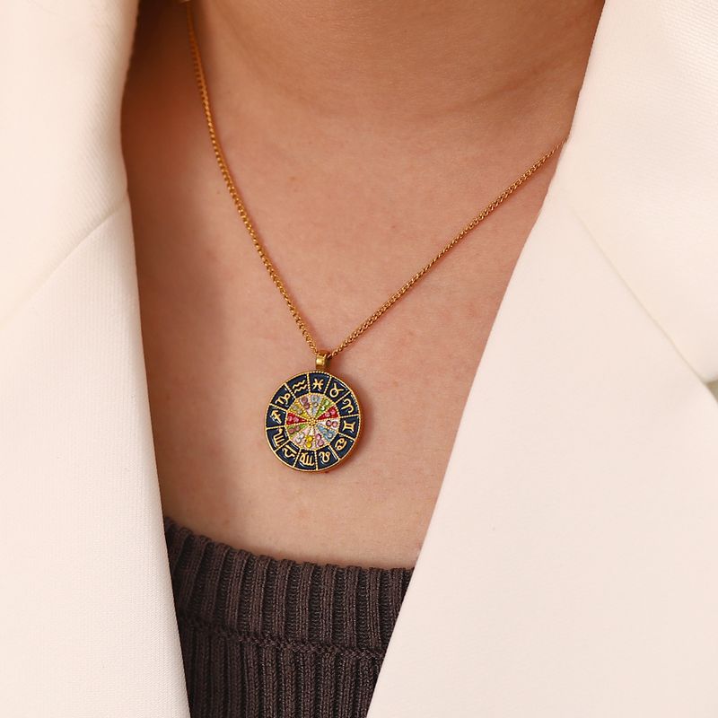 Instagram influencer versatile fashion titanium steel non fading with twelve zodiac signs, oil drop inlaid color diamond